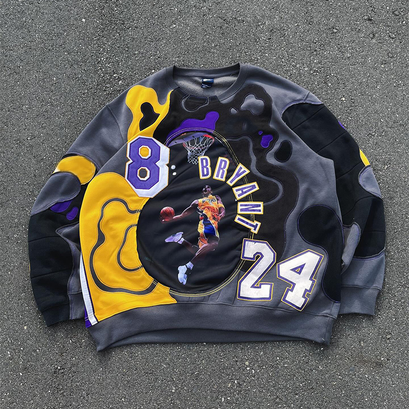 Sports stitching contrast color digital print crew neck sweatshirt