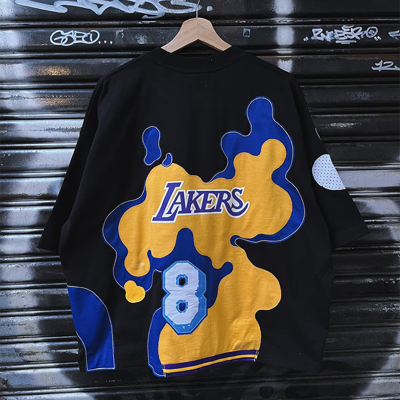 Oversized contrast Sports patch print three-quarter sleeve T-shirt