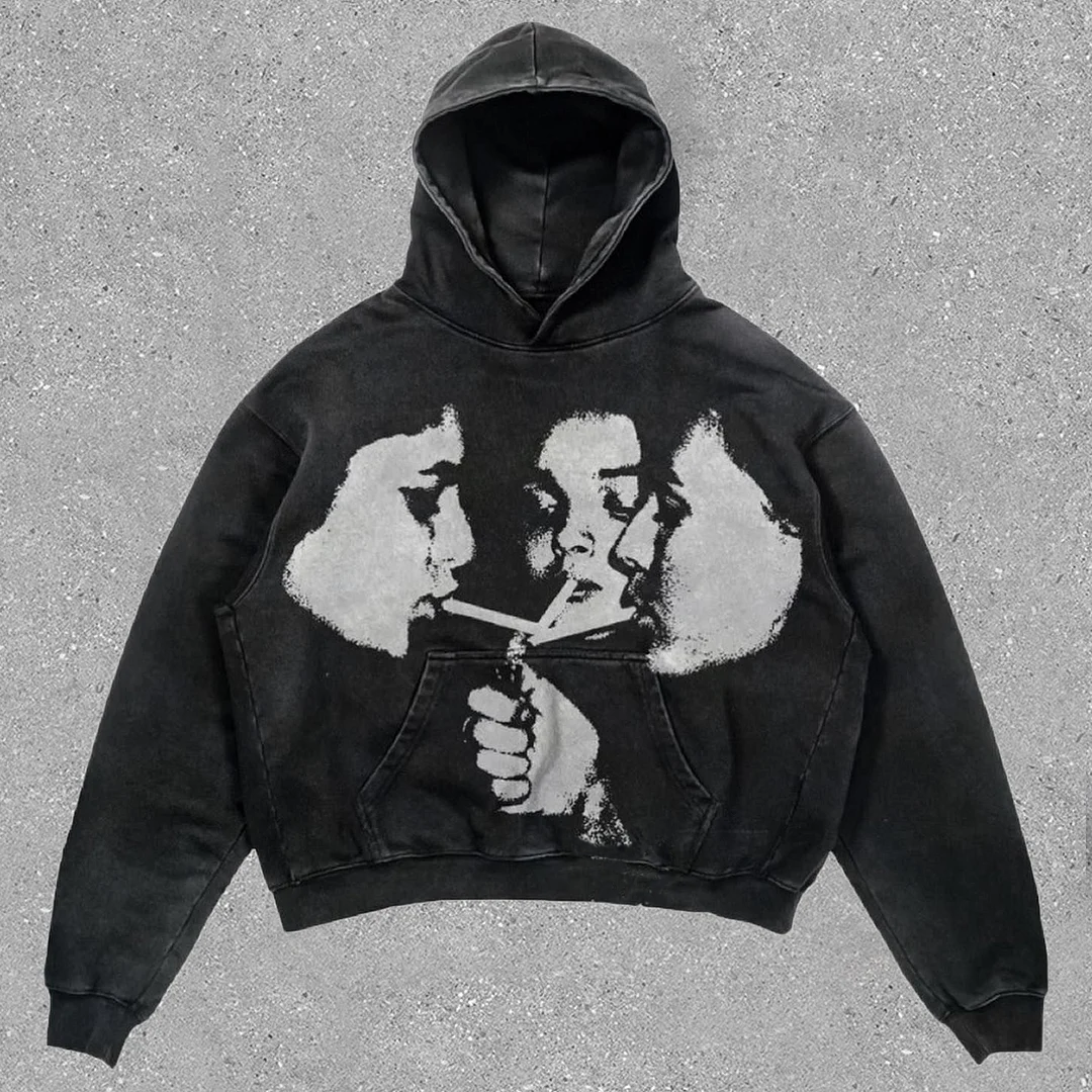 Relaxed Vintage Graphic Casual Street Washed Hoodie