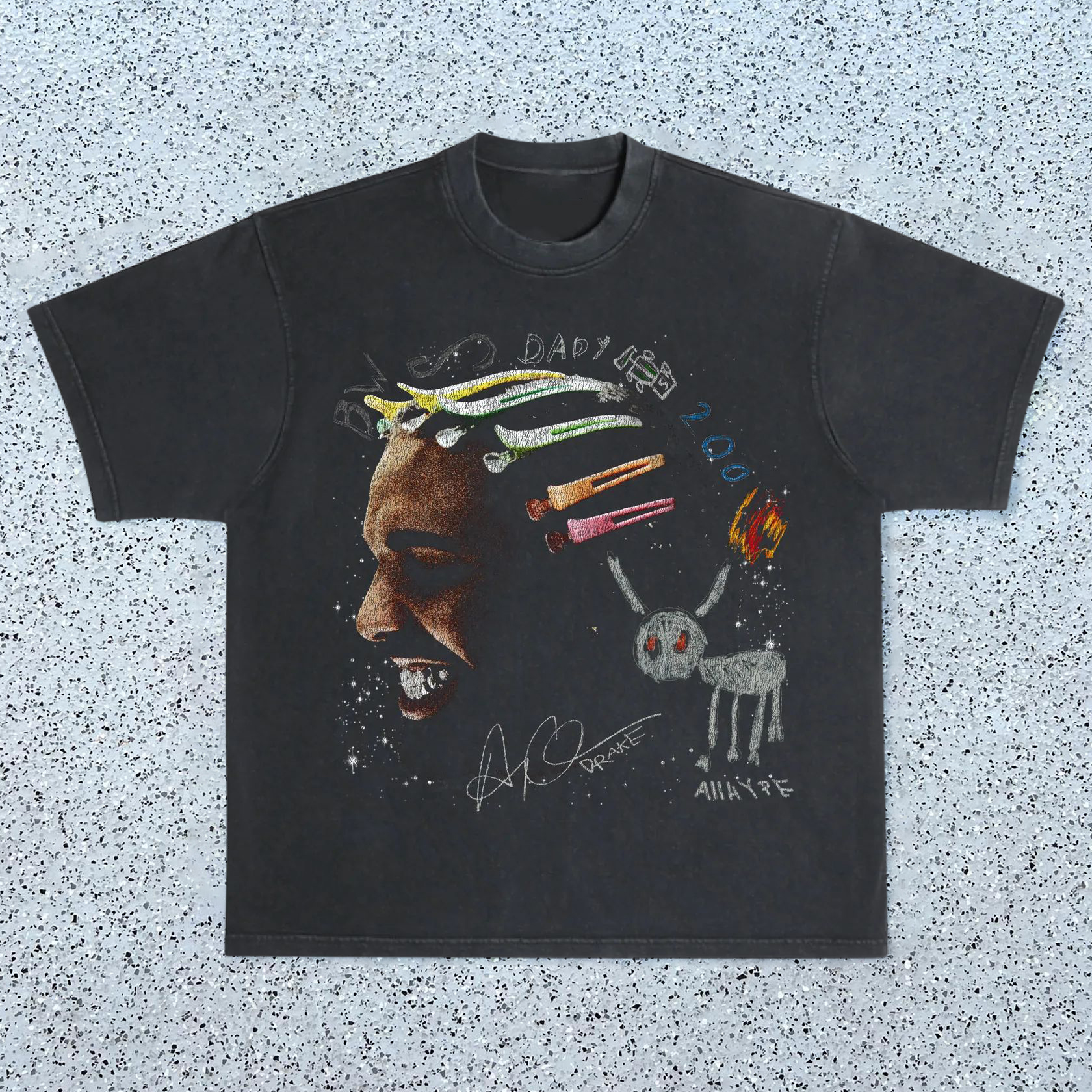 Fashion Character Washed Distressed Short Sleeve T-Shirt