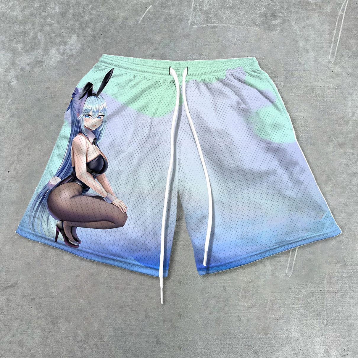 Bunny Girl Retro Print Mesh Shorts