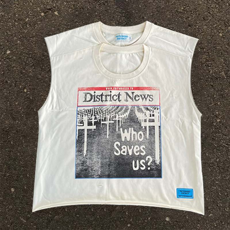 Double collar round neck printed sleeveless vest