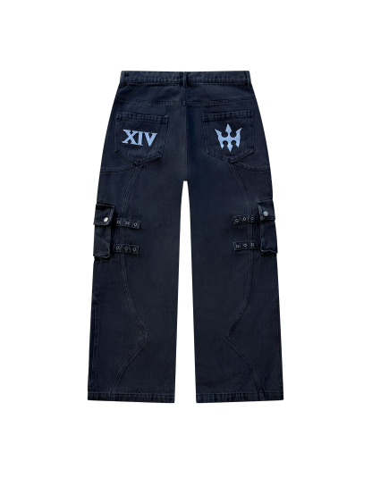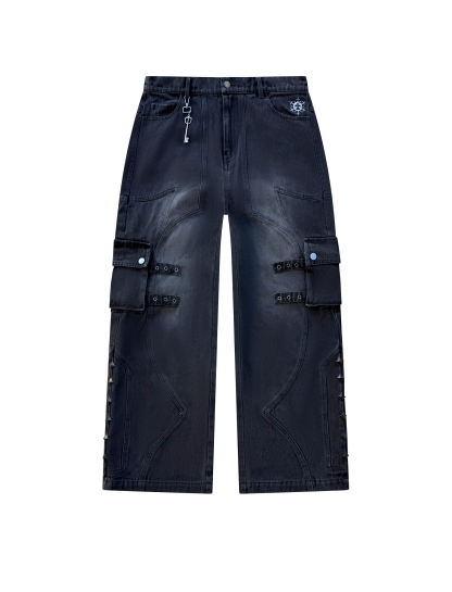 -custom front & back splicing pattern with cargo pockets & straps