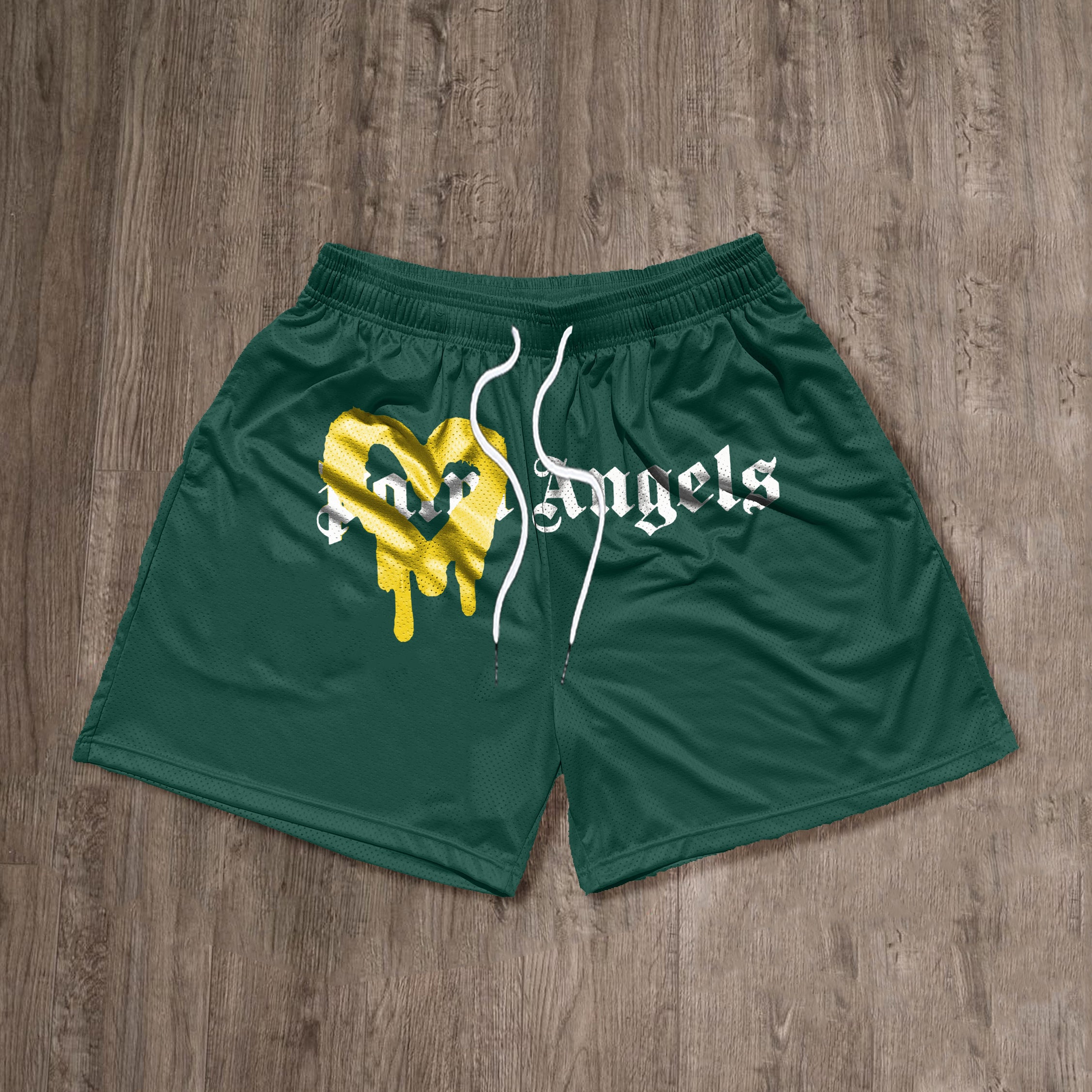 Heart & Angel Print Mesh Shorts