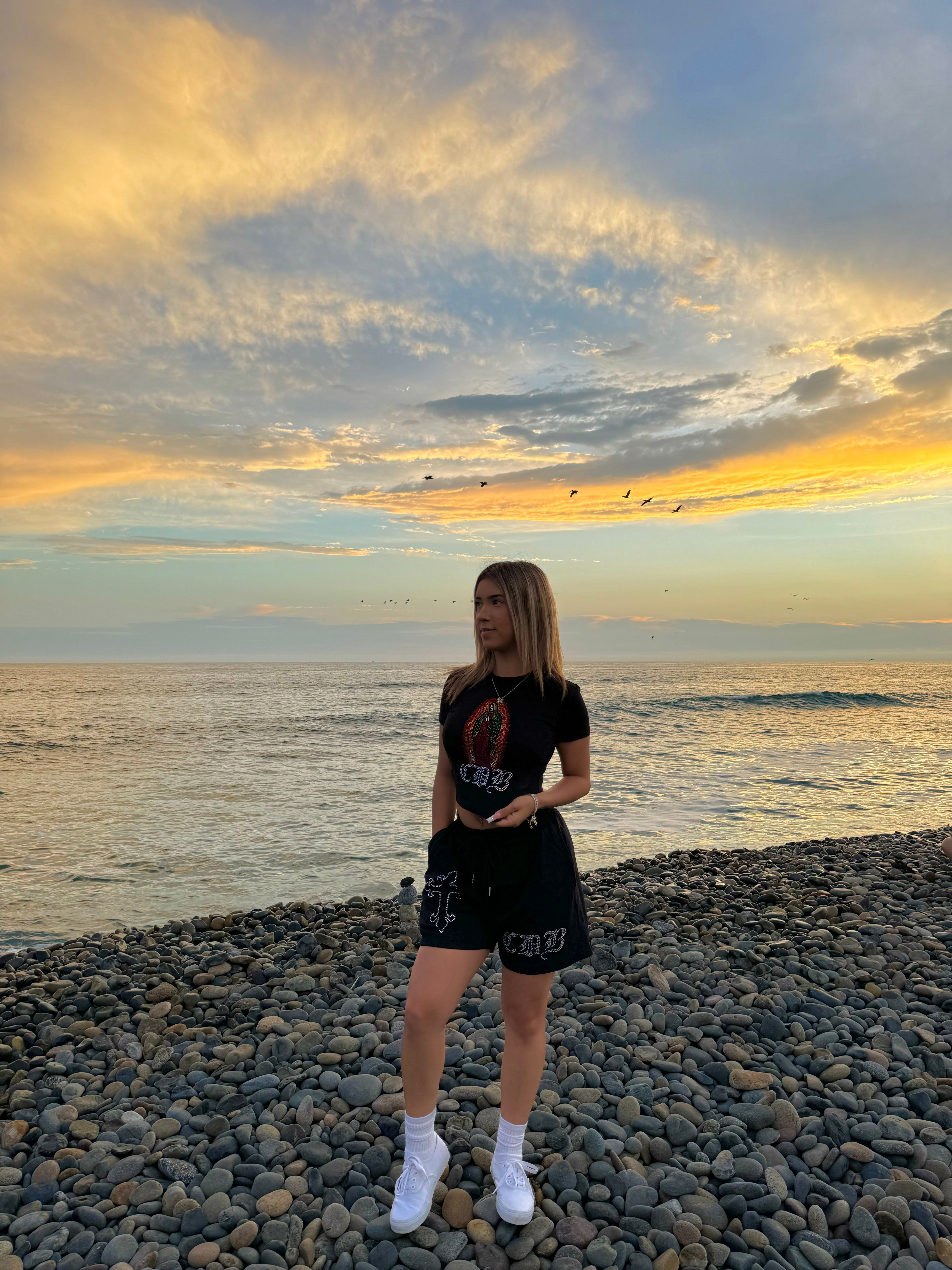 - CDB and Cross logos rhinestone logos on front